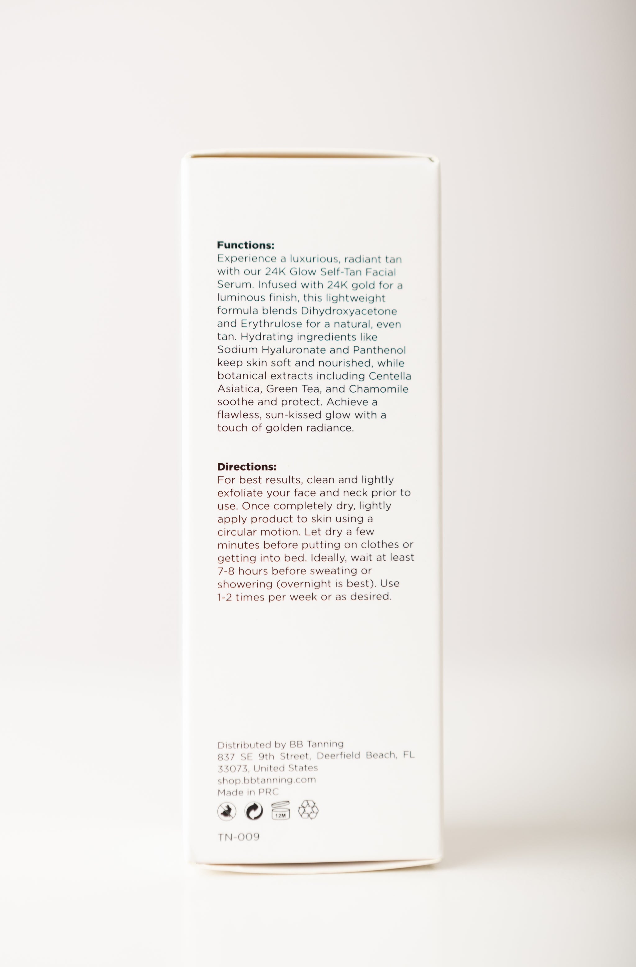 Crafted for the glow-getter, this luxurious face serum blends real 24K gold leaves with advanced self-tanning technology — giving you a radiant, golden tan without UV exposure. Lightweight and fast-absorbing, it melts into the skin, leaving a silky, luminous finish with no streaks, stickiness, or residue.